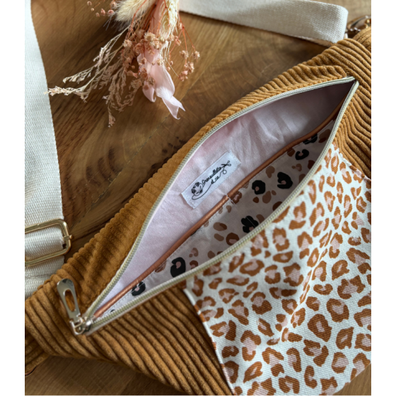 "Mélie", une besace confectionnée avec soin et passion dans mon atelier, conçue pour allier esthétisme et fonctionnalité.