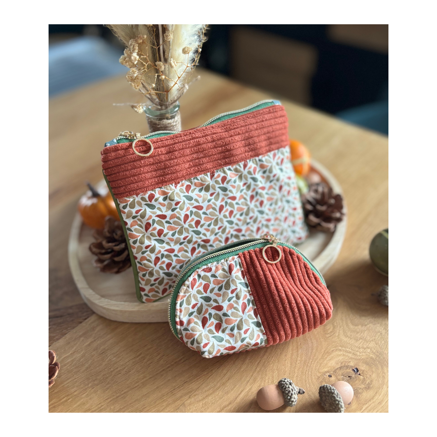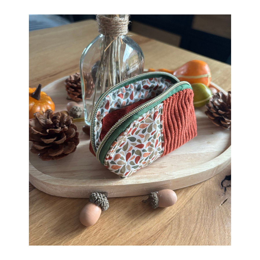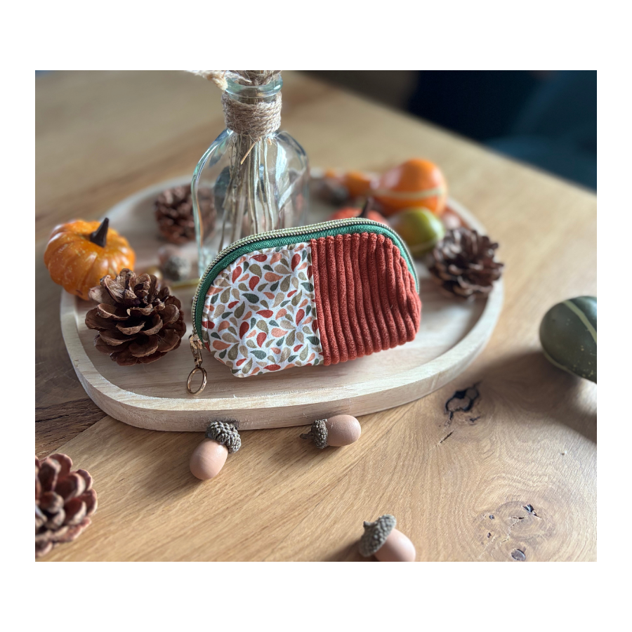 Porte-monnaie en velours artisanal terracotta braise d'automne